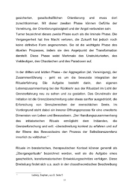 Turner bezeichnet dieses zweite Phase auch als die liminale Phase. Die